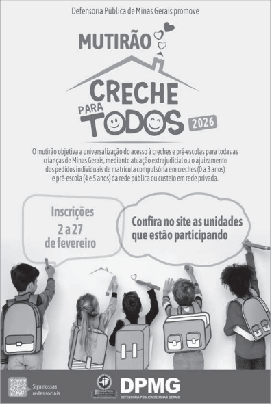 com inscrições abertas para a terceira edição do Mutirão Creche para Todos, iniciativa criada para ampliar o acesso à educação infantil no estado. As famílias interessadas poderão se inscrever até dia 27 de fevereiro.