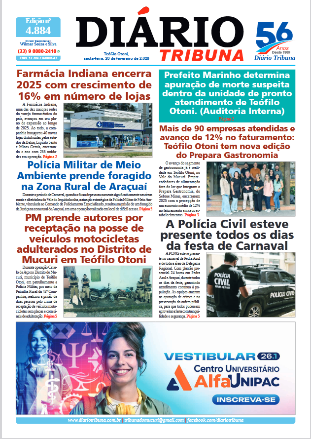 Acesse o link abaixo e veja a edição completa do Diário Tribuna de sexta-feira (20/02/2026):
