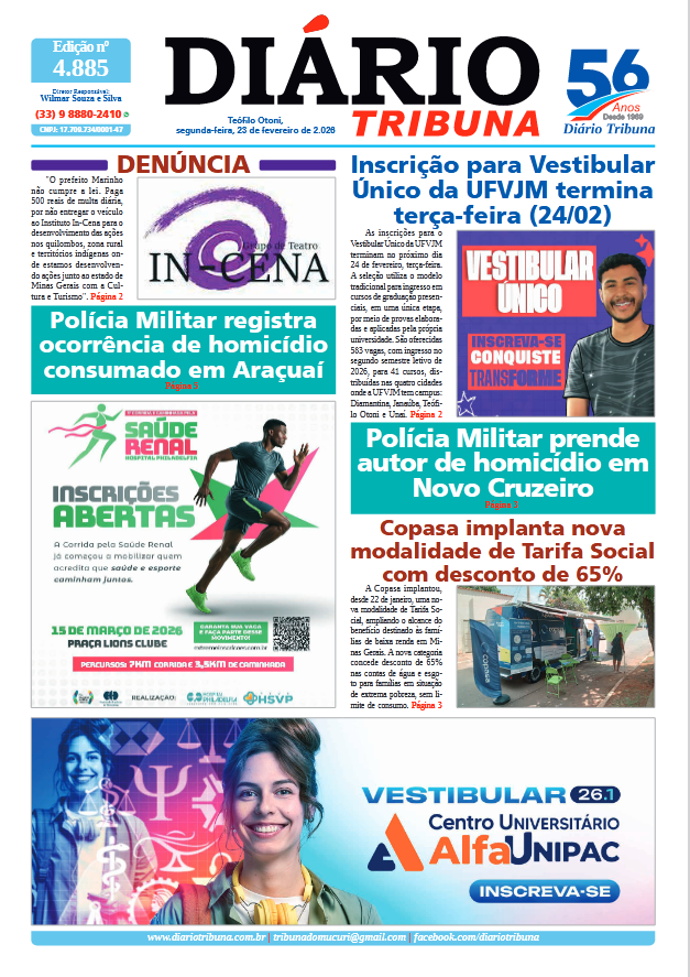 Acesse o link abaixo e veja a edição completa do Diário Tribuna de segunda-feira (23/02/2026):