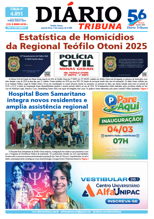 Acesse o link abaixo e veja a edição completa do Diário Tribuna de quarta-feira (04/03/2026):