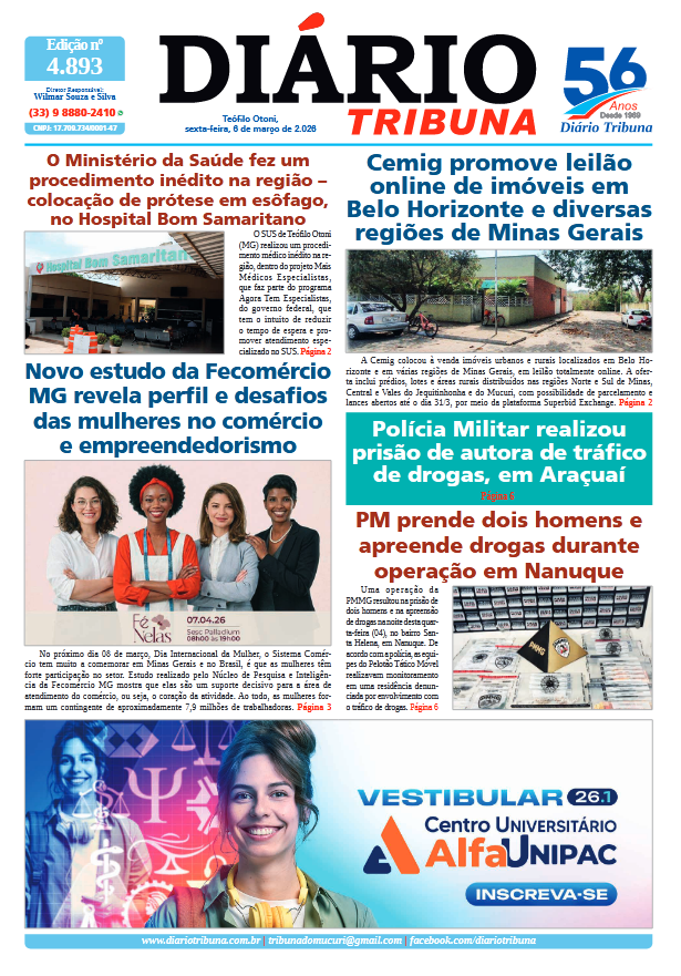 Acesse o link abaixo e veja a edição completa do Diário Tribuna de sexta-feira (06/03/2026):