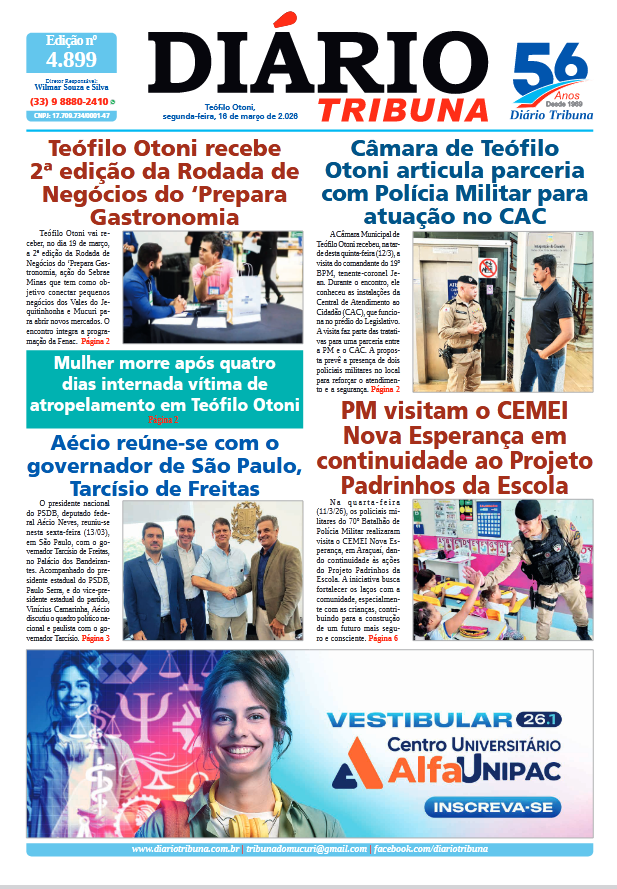 Acesse o link abaixo e veja a edição completa do Diário Tribuna de segunda-feira (16/03/2026):
