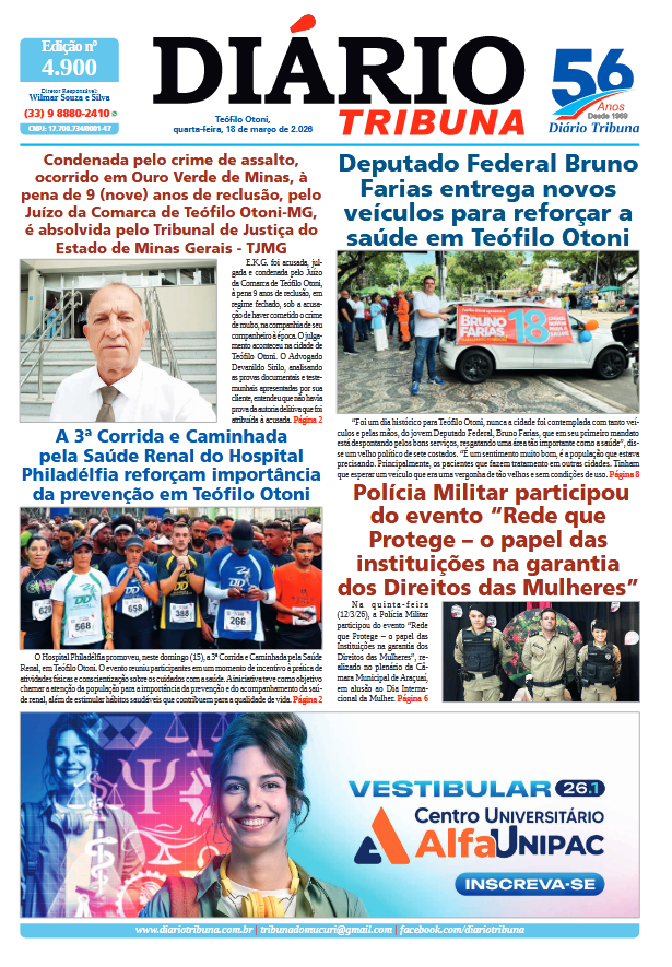 Acesse o link abaixo e veja a edição completa do Diário Tribuna de quarta-feira (18/03/2026):