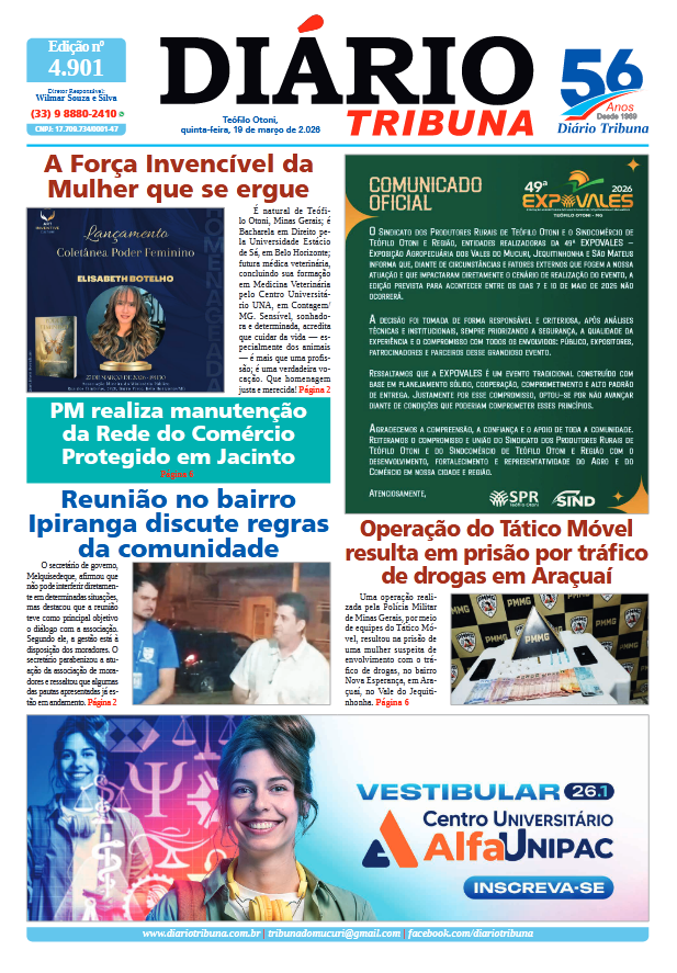 Acesse o link abaixo e veja a edição completa do Diário Tribuna de quinta-feira (19/03/2026):