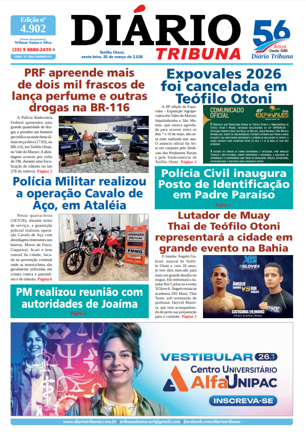 Acesse o link abaixo e veja a edição completa do Diário Tribuna de sexta-feira (20/03/2026):