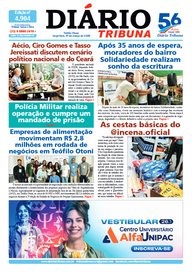Acesse o link abaixo e veja a edição completa do Diário Tribuna de terça-feira (24/03/2026):