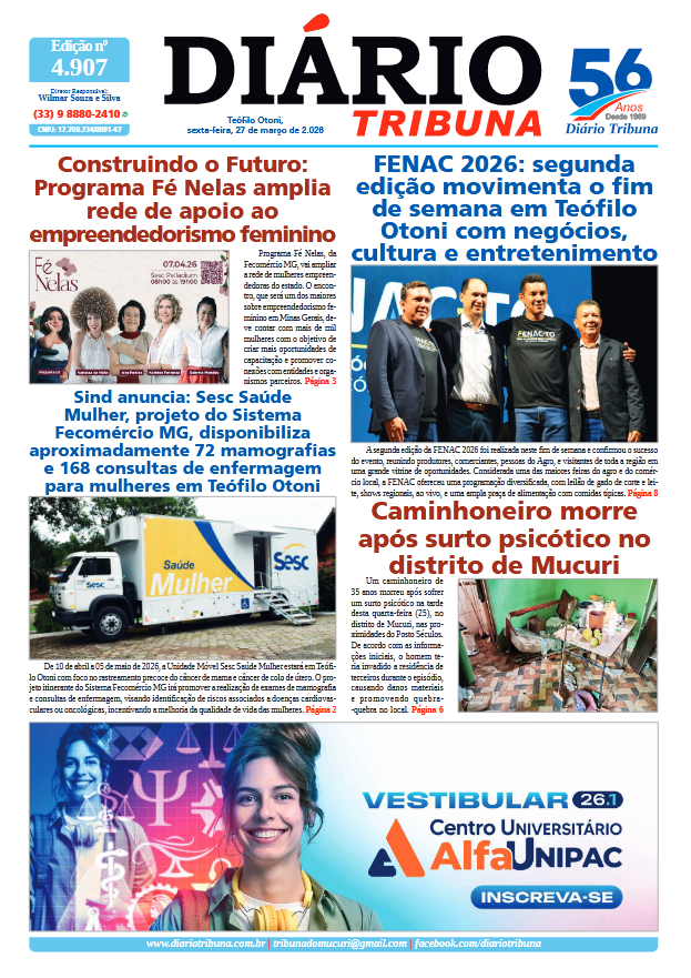 Acesse o link abaixo e veja a edição completa do Diário Tribuna de sexta-feira (27/03/2026):