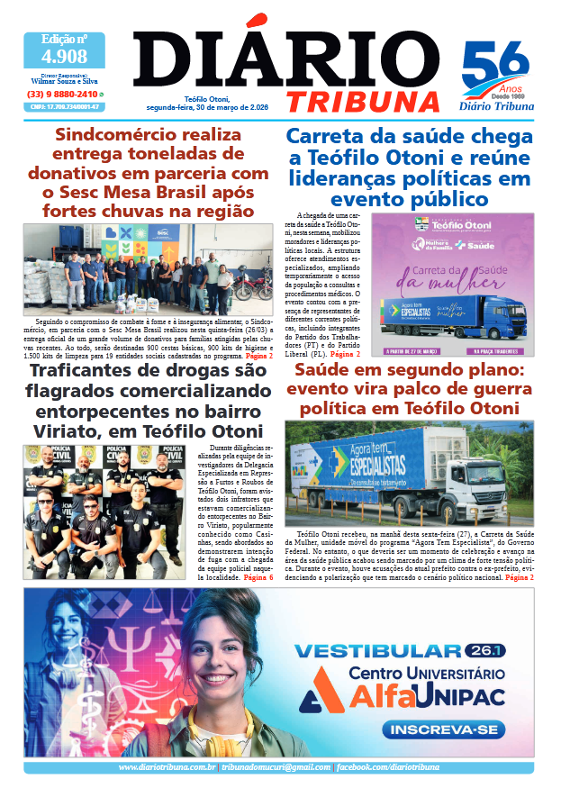 Acesse o link abaixo e veja a edição completa do Diário Tribuna de segunda-feira (30/03/2026):