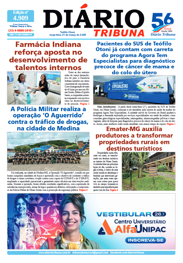 Acesse o link abaixo e veja a edição completa do Diário Tribuna de terça-feira (31/03/2026):