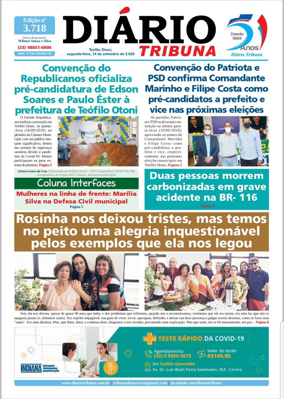 Diário Tribuna, 14 de Setembro 2020, Teófilo Otoni – MG Por diariotribuna - 14/09/2020 0 1017 Facebook Twitter Google+ Pinterest WhatsApp Acesse o link abaixo e veja a edição completa do Diário Tribuna desta Segunda-feira (14/09/2020) https://diariotribuna.com.br/wp-content/uploads/2020/09/DIARIO-TRIBUNA-50-ANOS-14-SETEMBRO-2020.pdf