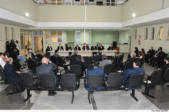 O presidente do Tribunal de Justiça de Minas Gerais (TJMG), desembargador Gilson Soares Lemes, esteve em visita oficial a magistrados da Comarca de Contagem na terça-feira, (22/09). O chefe do Poder Judiciário estadual tratou de três assuntos: retomada dos trabalhos, projetos do TJMG focados nos avanços tecnológicos e orçamento para 2021.