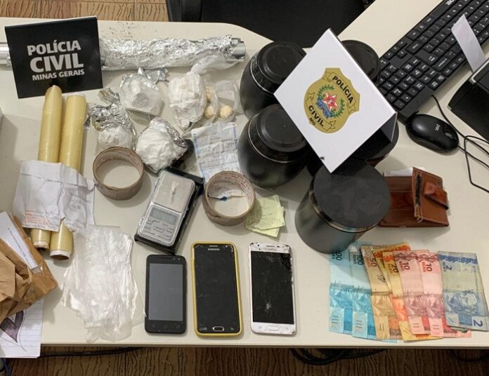 A Polícia Civil de Minas Gerais, através da Delegacia de Tóxicos vinculada à Delegacia Regional de Almenara, cumpriu medida cautelar de busca e apreensão representada com fundamento em denúncia anônima averiguada, em 29 de setembro/ 2020, e prendeu em flagrante C.S.B., L.A.J., e J.B. pela prática dos crimes de tráfico de drogas e associação para a prática do referido delito.