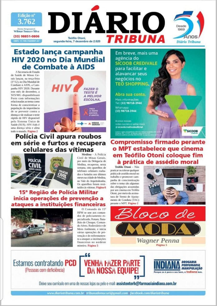 Diário Tribuna, 07 de Dezembro 2020, Teófilo Otoni – MG Por diariotribuna - 08/12/2020 0 571 Facebook Twitter Google+ Pinterest WhatsApp Acesse o link abaixo e veja a edição completa do Diário Tribuna desta Segunda-feira (07/12/2020) https://diariotribuna.com.br/wp-content/uploads/2020/12/DIARIO-TRIBUNA-51-ANOS-07-DEZEMBRO-2020.pdf