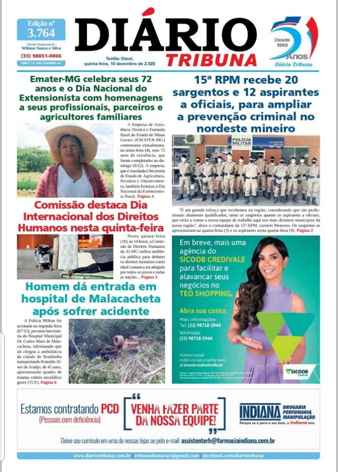 Diário Tribuna, 10 de Dezembro 2020, Teófilo Otoni – MG Por diariotribuna - 10/12/2020 0 401 Facebook Twitter Google+ Pinterest WhatsApp Acesse o link abaixo e veja a edição completa do Diário Tribuna desta Quinta-feira (10/12/2020) https://diariotribuna.com.br/wp-content/uploads/2020/12/DIARIO-TRIBUNA-51-ANOS-10-DEZEMBRO-2020.pdf