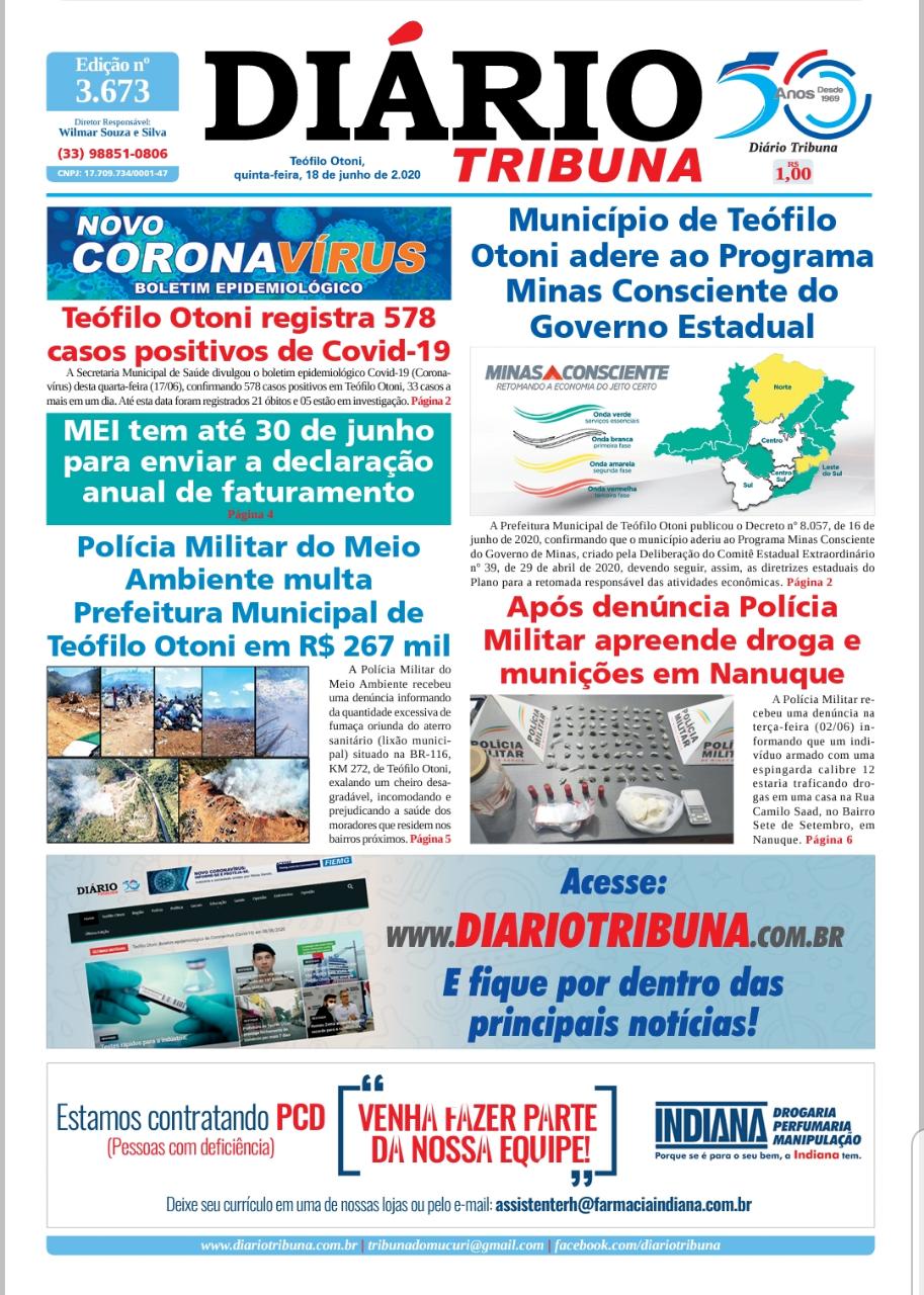 Diário Tribuna, 18 de junho 2020, Teófilo Otoni – Minas Gerais Por diariotribuna - 18/06/2020 0 1118 Facebook Twitter Google+ Pinterest WhatsApp https://diariotribuna.com.br/wp-content/uploads/2020/06/DIARIO-TRIBUNA-50-ANOS-18-JUNHO-2020.pdf