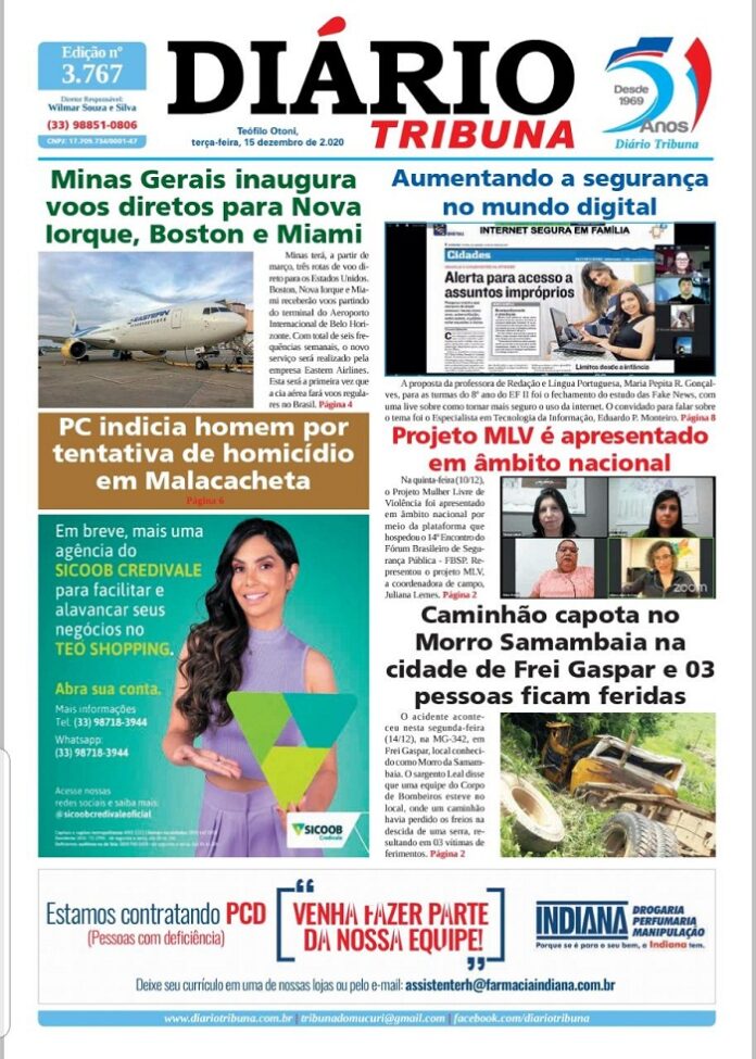 Diário Tribuna, 15 de Dezembro 2020, Teófilo Otoni – MG Por diariotribuna - 15/12/2020 0 765 Facebook Twitter Google+ Pinterest WhatsApp Acesse o link abaixo e veja a edição completa do Diário Tribuna desta Terça-feira (15/12/2020) https://diariotribuna.com.br/wp-content/uploads/2020/12/DIARIO-TRIBUNA-51-ANOS-15-DEZEMBRO-2020.pdf