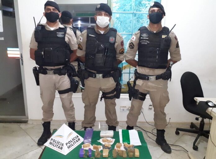 Materiais apreendidos: 11 tabletes de maconha prensada pesando 2,5 Kg, 06 tabletes de pedras brutas de crack pesando 600grs. Equipe GEPAR: Sargento Mikael, cabo Abrantes e soldado Ribeiro. Apoio CPU: Tenente Arnapablo e Cabo Vicenzo. (Informações/Fotos: PMMG/19º BPM/ 47ª CIA – GEPAR/ 15ª RPM)).