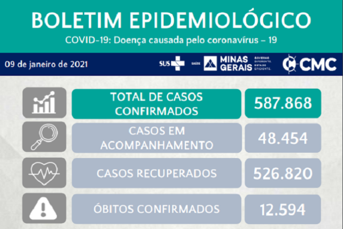 (Fonte: Painel COVID-19 MG/Sala de Situação/SubVS/SES/MG. Dados parciais, sujeitos a alterações. Atualizado em 09/01/2021.