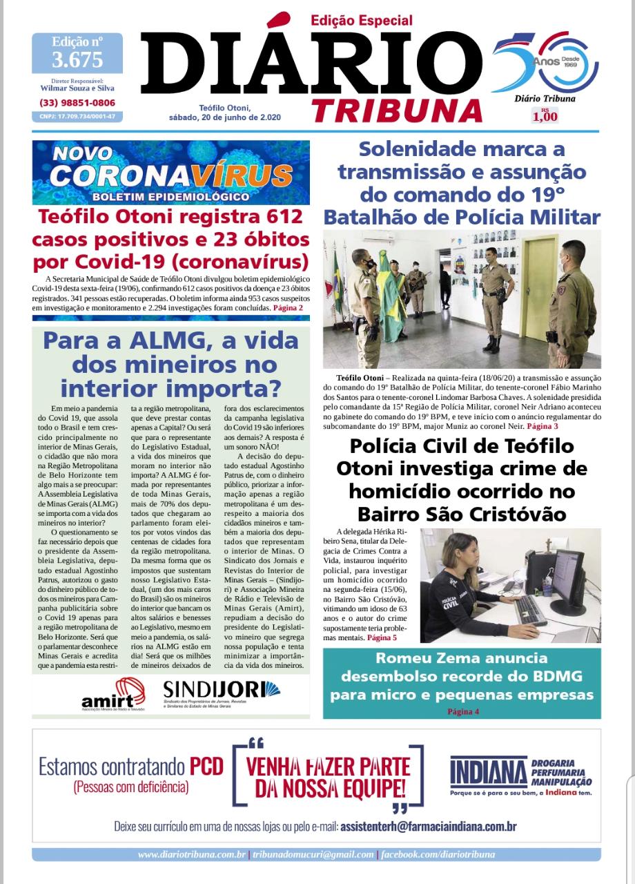 Diário Tribuna, 20 de Junho de 2020, Teófilo Otoni – Minas Gerais Por diariotribuna - 21/06/2020 0 715 Facebook Twitter Google+ Pinterest WhatsApp https://diariotribuna.com.br/wp-content/uploads/2020/06/DIARIO-TRIBUNA-50-ANOS-20-JUNHO-2020.pdf