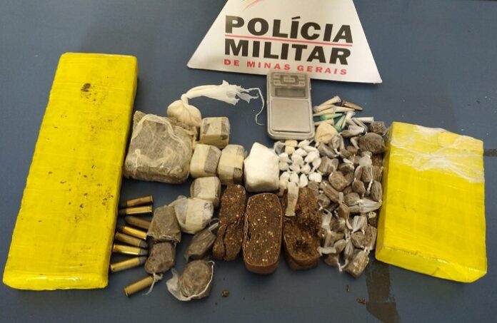 Materiais: 06 tabletes, 09 porções e 63 buchas de maconha, 14 pinos, 20 papelotes e uma barra de cocaína, 10 munições de diversos calibres, 01 espingarda de fabricação artesanal, 01 balança de precisão, 01 aparelho celular de procedência duvidosa e um freezer produto de furto ocorrido em data anterior. Os detidos e os materiais apreendidos foram encaminhados para a delegacia de Polícia Civil em Jequitinhonha. (Assessoria de comunicação organizacional do 44º BPM, Almenara).