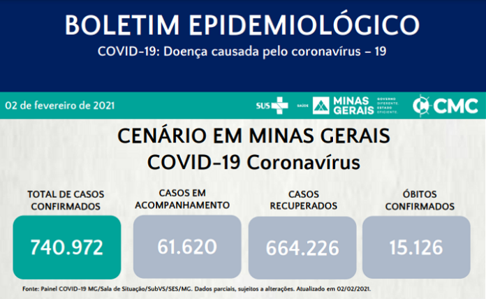 (Fonte: Painel COVID-19 MG/Sala de Situação/SubVS/SES/MG. Dados parciais, sujeitos a alterações. Atualizado em 02/02/2021).
