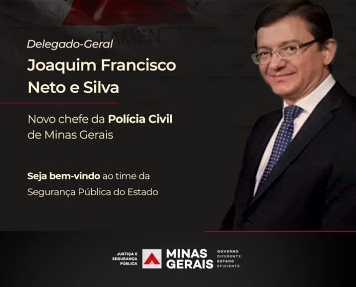 O Governo de Minas informa que o novo chefe da Polícia Civil de Minas Gerais (PCMG) será Joaquim Francisco Neto e Silva, que ocupava o cargo de chefe adjunto da PCMG. Joaquim Francisco é delegado de polícia desde 1997, quando ingressou nos quadros da Instituição.