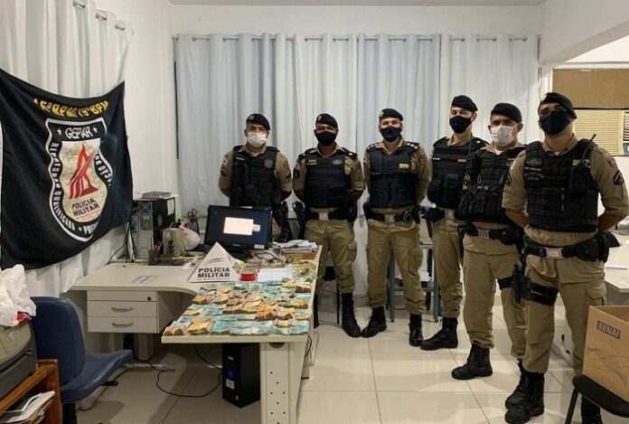 Com a aproximação das equipes, os indivíduos fugiram, deixando alguns entorpecentes próximo ao portão da casa. Após aproximação da porta da casa os militares puderam ver uma grande quantidade de dinheiro no chão da sala, que depois de contabilizado, somou-se o total de R$ 70.953,00. Também foram apreendidos 03 pedras de crack, 02 pinos com cocaína e 01 bucha de maconha, além de materiais comumente utilizados para embalar entorpecentes e caderno de anotações.
