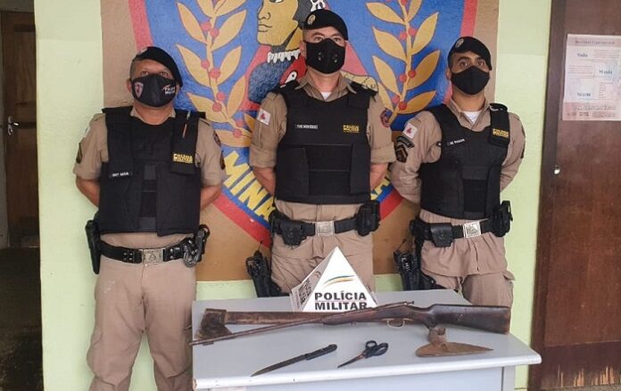 Padre Paraíso – A Polícia Militar recebeu denúncia na terça-feira (09/02) informando que na comunidade rural Córrego do Cristal, município de Padre Paraíso, um homem de aproximadamente 47 anos, teria ateado fogo na residência de seus próprios pais, onde apoderou-se de um machado e de uma enxada e danificou o imóvel e demais benfeitorias existentes no local. A solicitante que é irmã do autor, disse que ele também estaria de posse de uma arma de fogo, ameaçando-a de morte e também a uma outra vítima, que seria primo de ambos.