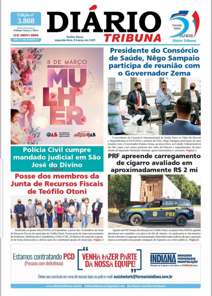 Diário Tribuna, 8 de Março 2021, Teófilo Otoni/MG Por diariotribuna - 08/03/2021 0 699 Facebook Twitter Google+ Pinterest WhatsApp Acesse o link abaixo e veja a edição completa do Diário Tribuna desta Segunda-feira (8/3/2021) https://diariotribuna.com.br/wp-content/uploads/2021/03/DIARIO-TRIBUNA-51-ANOS-08-MARCO-2021.pdf