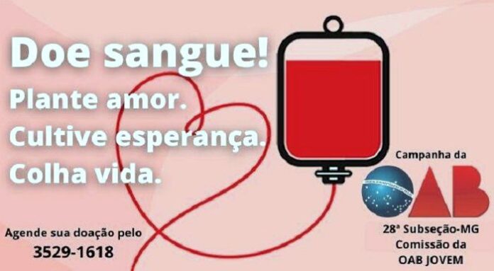 A 28ª Subseção da OAB/MG de Teófilo Otoni, através da Comissão OAB Jovem, está realizando uma campanha de doação de sangue para ajudar a abastecer o banco de sangue do Hospital Santa Rosália. O presidente da Comissão, dr. Rodrigo Caldeira, disse que a ideia da campanha foi levada à diretoria da Comissão da OAB Jovem pelo advogado, dr. Lucas Maciel e, de imediato, abraçada por toda equipe e pela presidente da 28ª Subseção da OAB, dra. Maria Beatriz Cunha Cicci Neves.