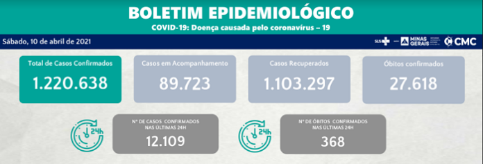 (Dados parciais, sujeitos a alterações. Atualizado em 10/04/2021. Fonte: COES MINAS/COVID-19/SES-MG).